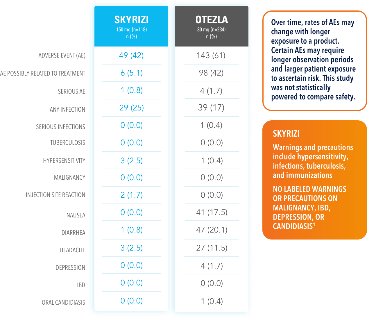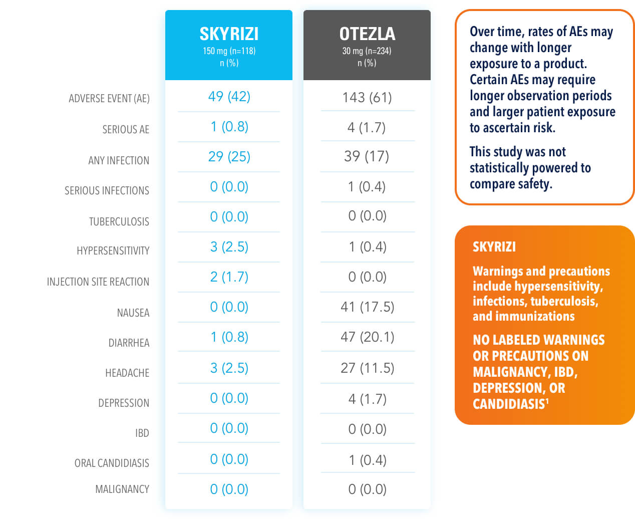 OVERALL RATES OF AEs AND TEAEs WITH SKYRIZI AND OTEZLA AT WEEK 16 (PERIOD A)2