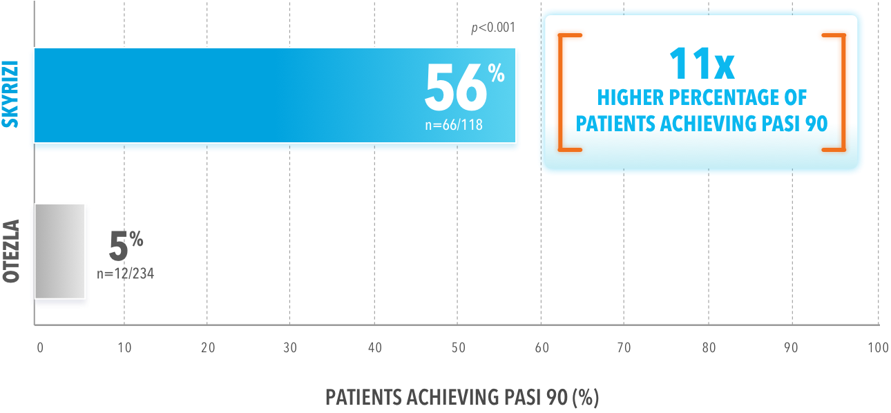 SKYRIZI PATIENTS ACHIEVED HIGHER PASI 90 RATES vs OTEZLA PATIENTS