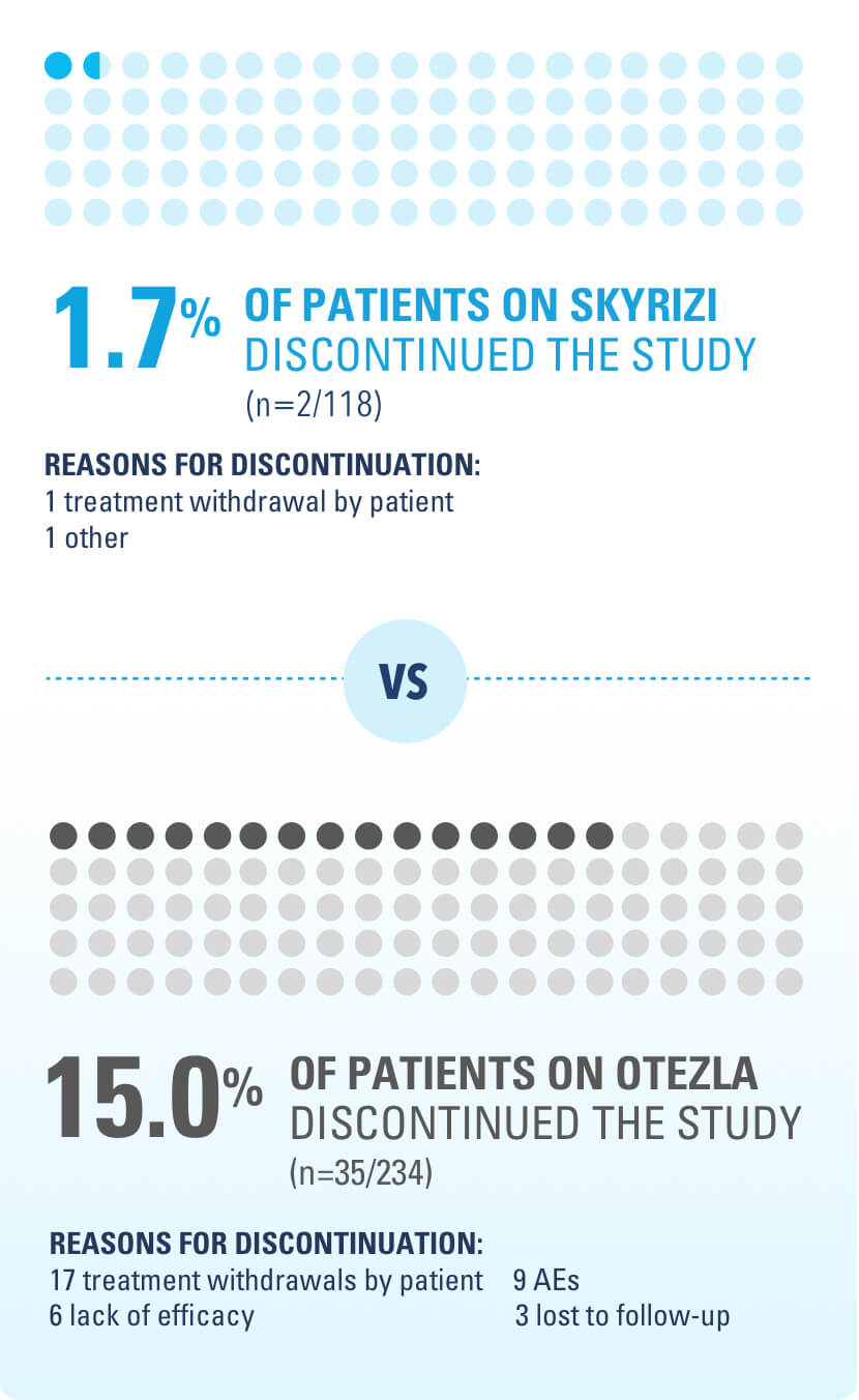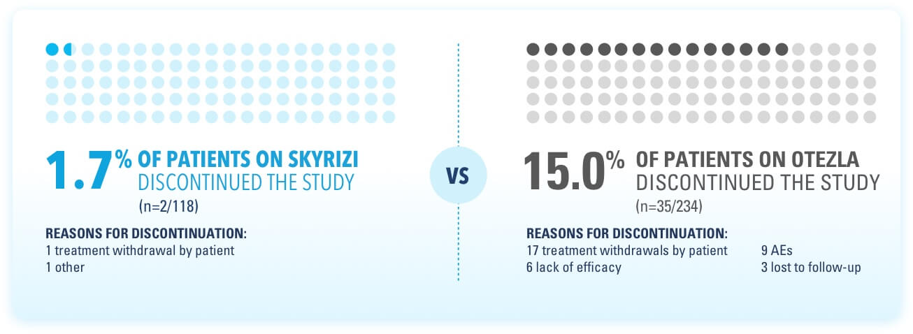 Discontinuation rates for SKYRIZI® and OTEZLA®. Discontinuation rates for SKYRIZI® and OTEZLA®. Discontinuation rates for SKYRIZI® and OTEZLA®.