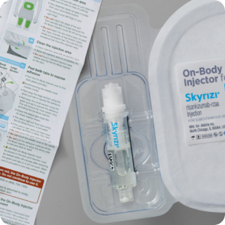 ADMINISTRATION CONSIDERATIONS: SKYRIZI is intended for use under the guidance and supervision of a healthcare professional (HCP). Patients may self-inject SKYRIZI using the OBI with prefilled cartridge after training in subcutaneous injection technique. Provide proper training to patients and/or caregivers on the subcutaneous injetion technique of SKYRIZI according to the Instructions for Use.1