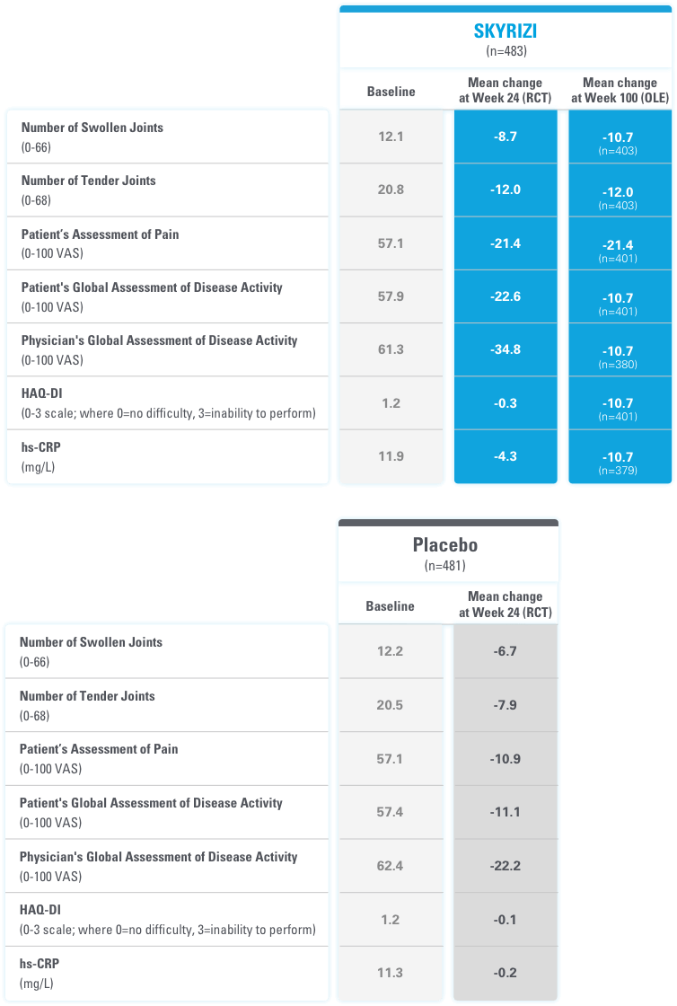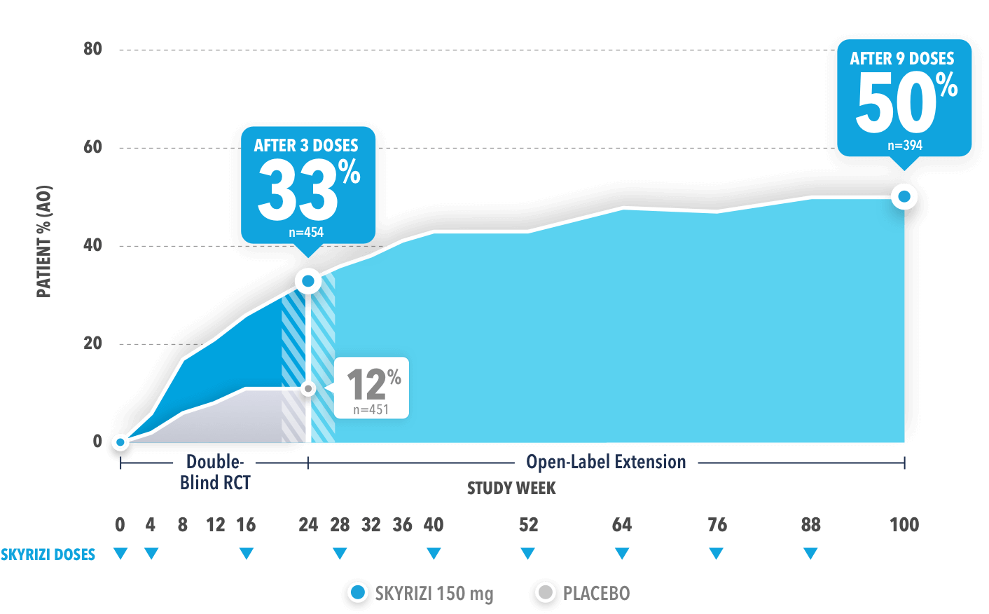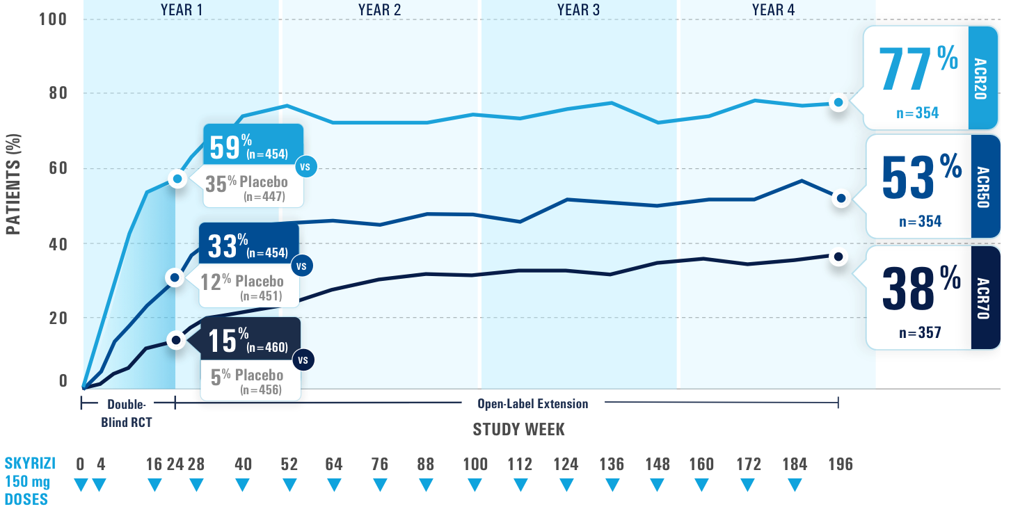 ACR50 - SKYRIZI 33% (n=483), PLACEBO 11% (n=481)
