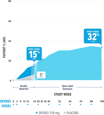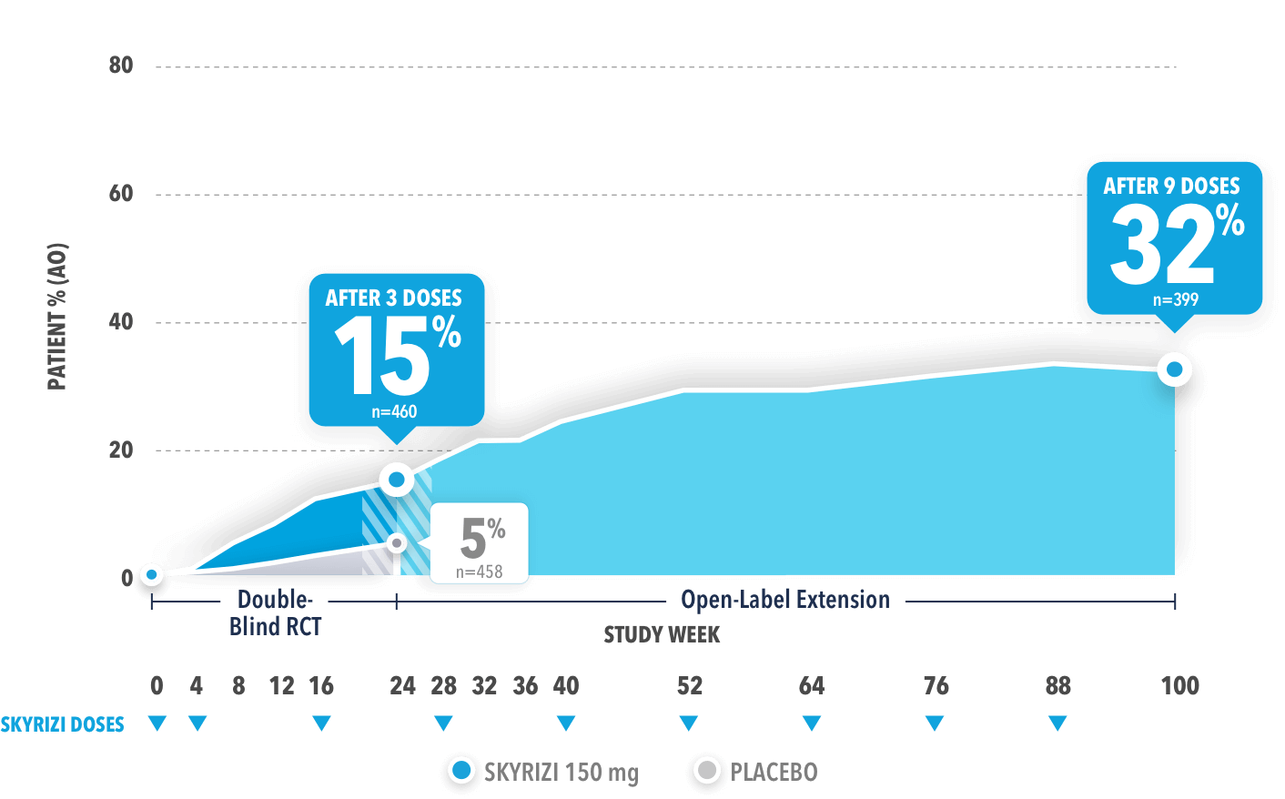 SKYRIZI 51% (n=224), PLACEBO 27% (n=219)