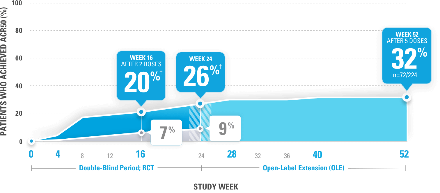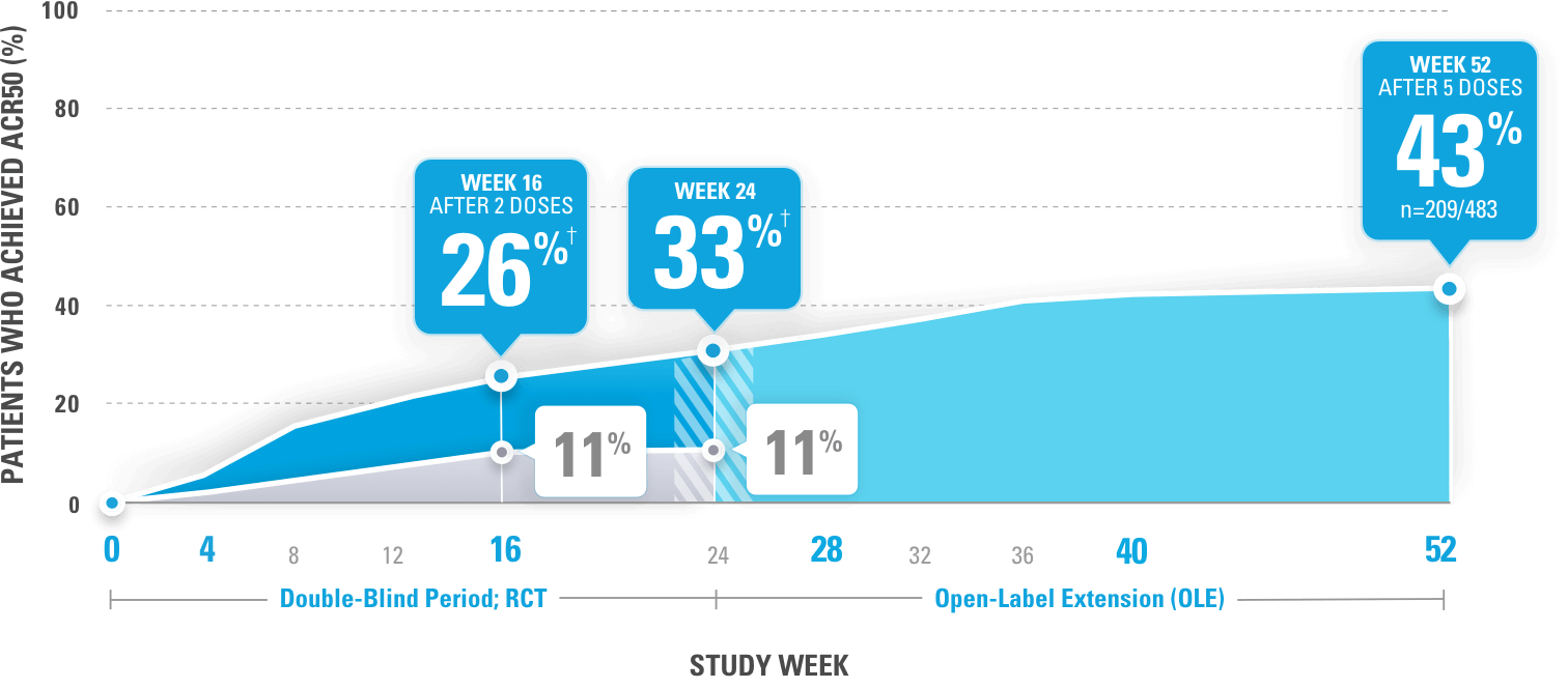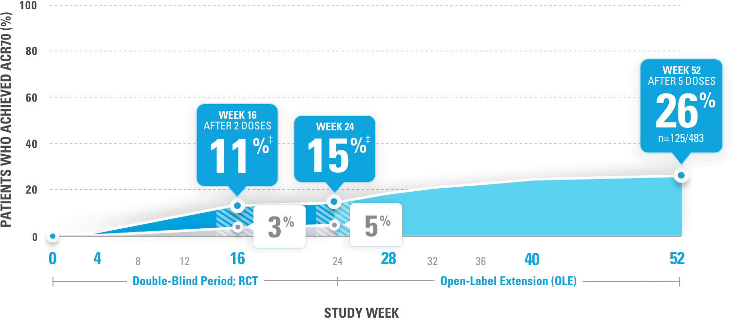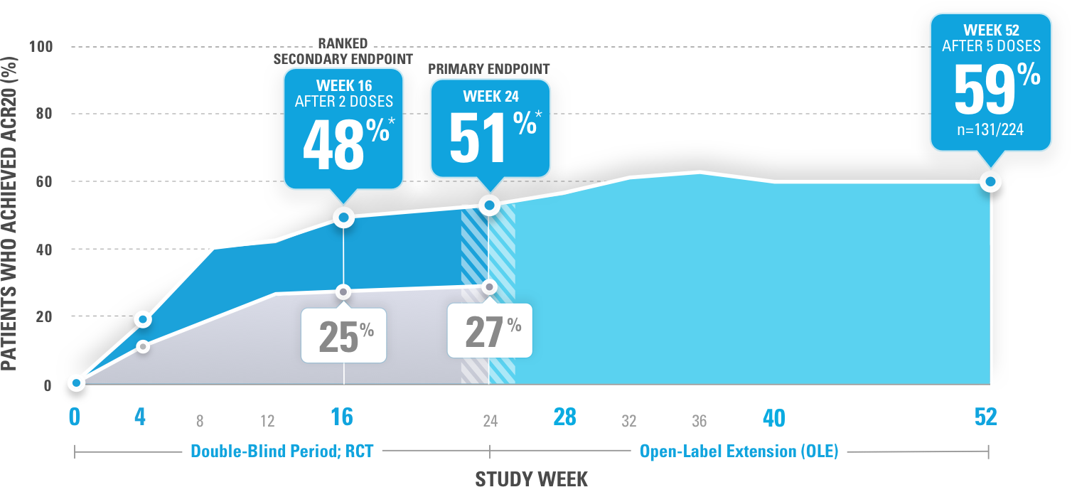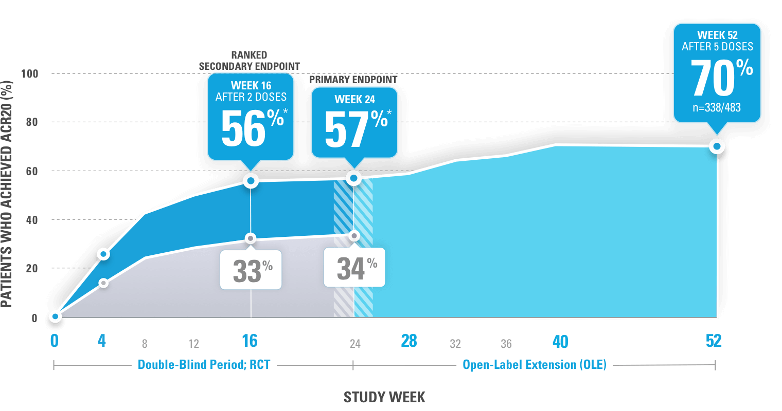 NON-RANKED SECONDARY ENDPOINTS WERE ACR50/70 RESPONSE AT WEEK 24 (NRI-C).1-3