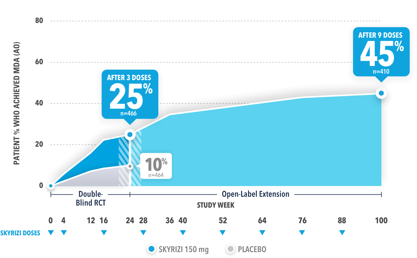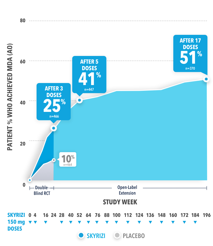 MDA ACHIEVED AT WEEK 24 (SKYRIZI: 25%, N=483; PLACEBO: 10%, N=481), NRI-C4*